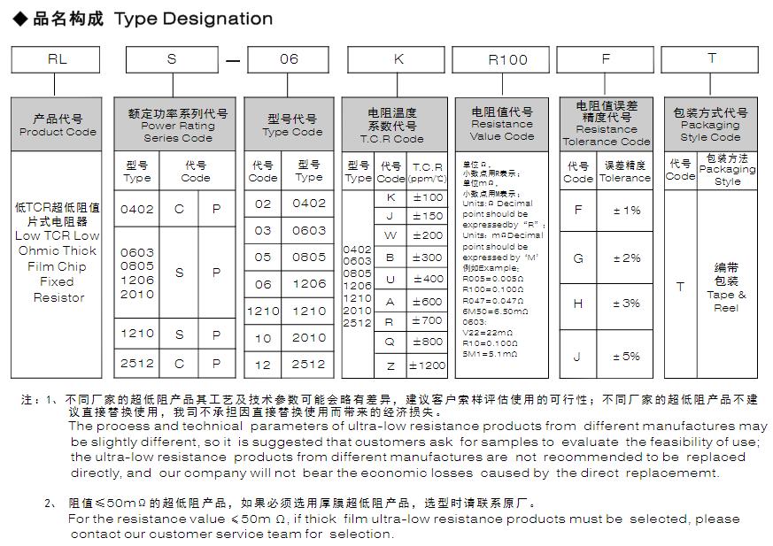 風(fēng)華低TCR超低阻厚膜片式固定電阻型號表示方法: