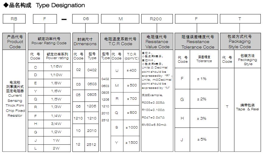 風華電流檢測厚膜片式固定電阻器型號命名規(guī)則: