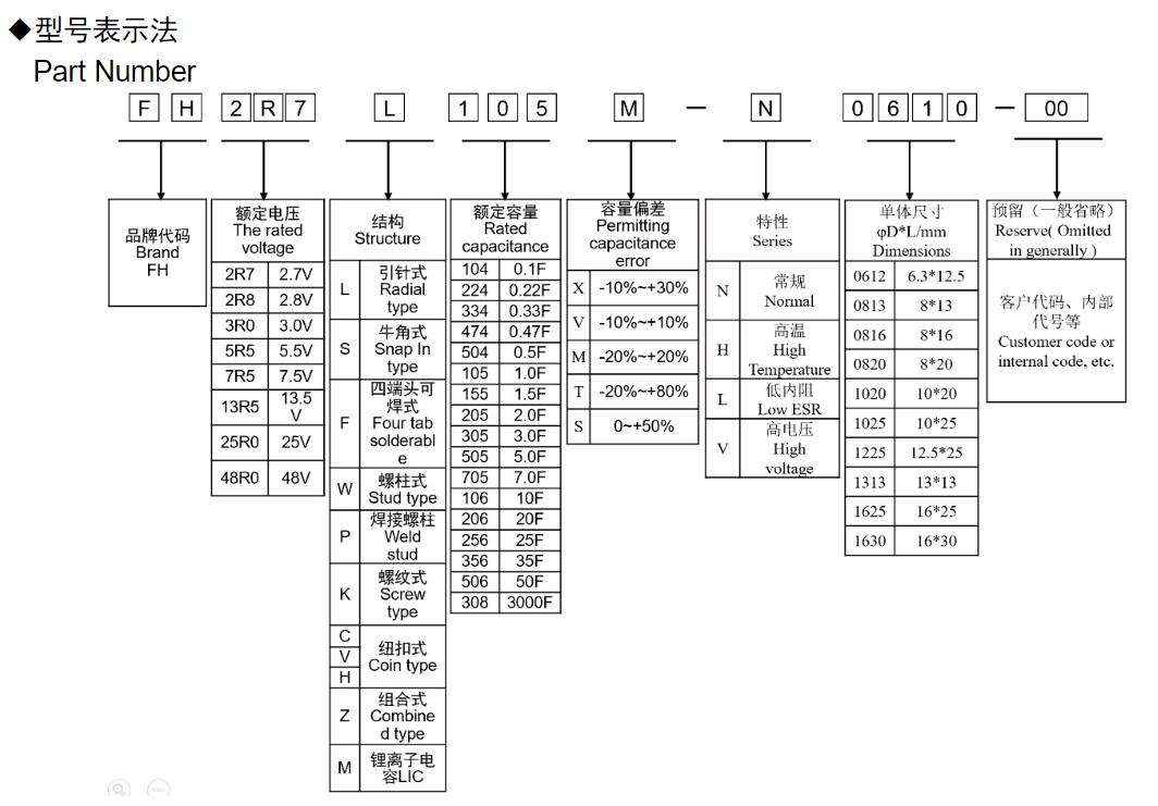 風(fēng)華高科圓柱型超級電容器型號命名規(guī)則: