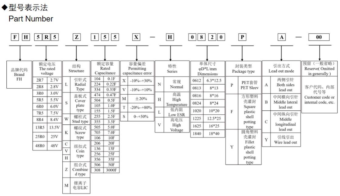 風(fēng)華高科組合式超級(jí)電容器型號(hào)命名規(guī)則: