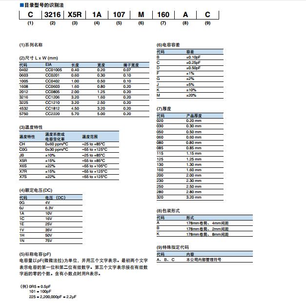 TDK貼片電容命名規(guī)則: