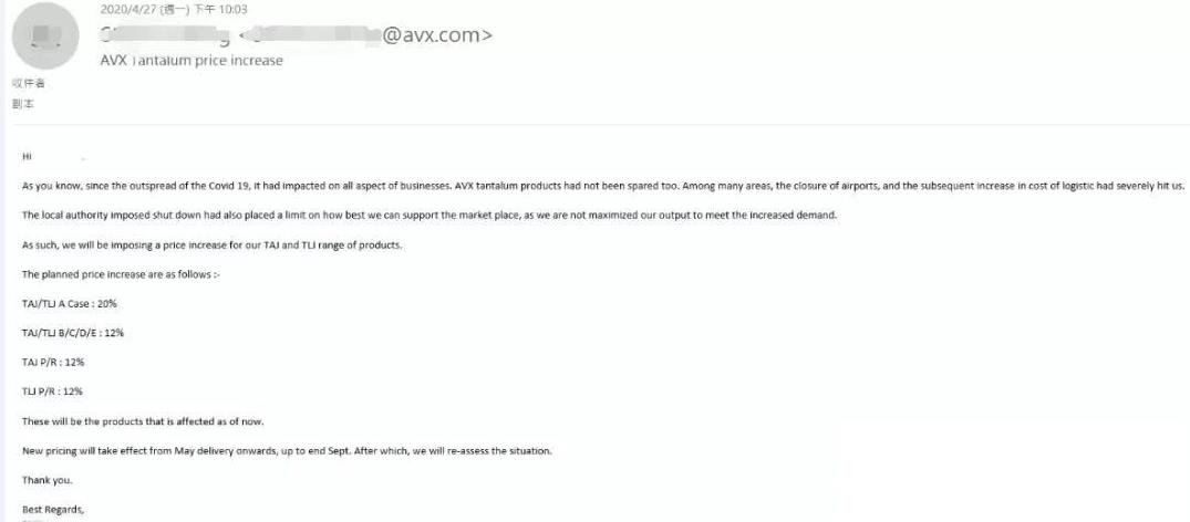 AVX鉭電容漲價(jià)
