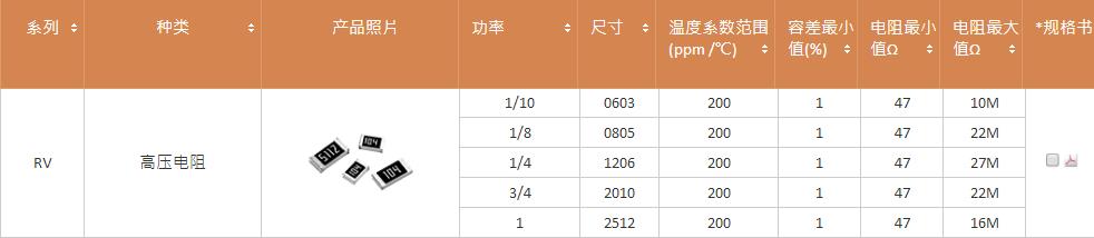 產(chǎn)品系列:國巨高壓電阻RV系列