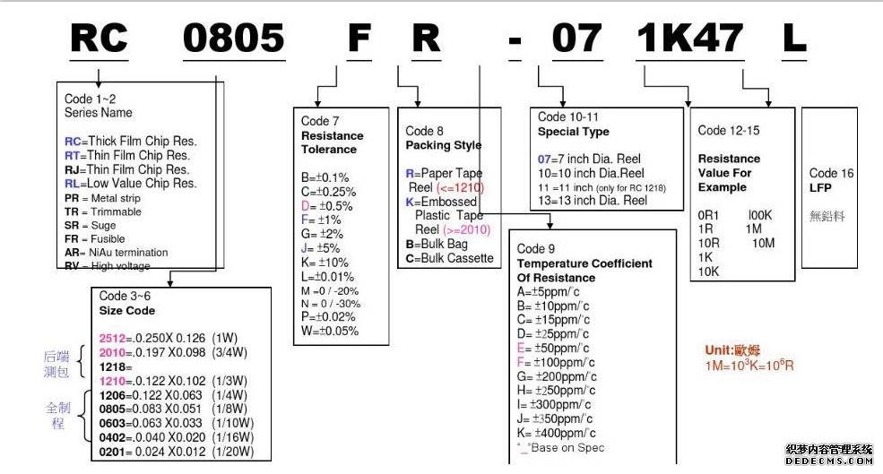 1k47數(shù)值表示阻值,如0R表示0歐;1K=1000歐,1M=1000 000歐