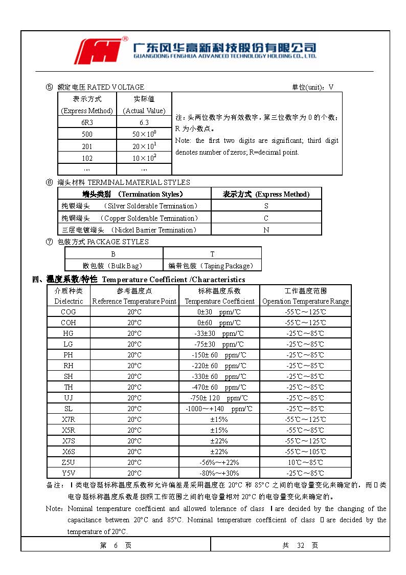 風(fēng)華高科貼片電容命名規(guī)則對照表