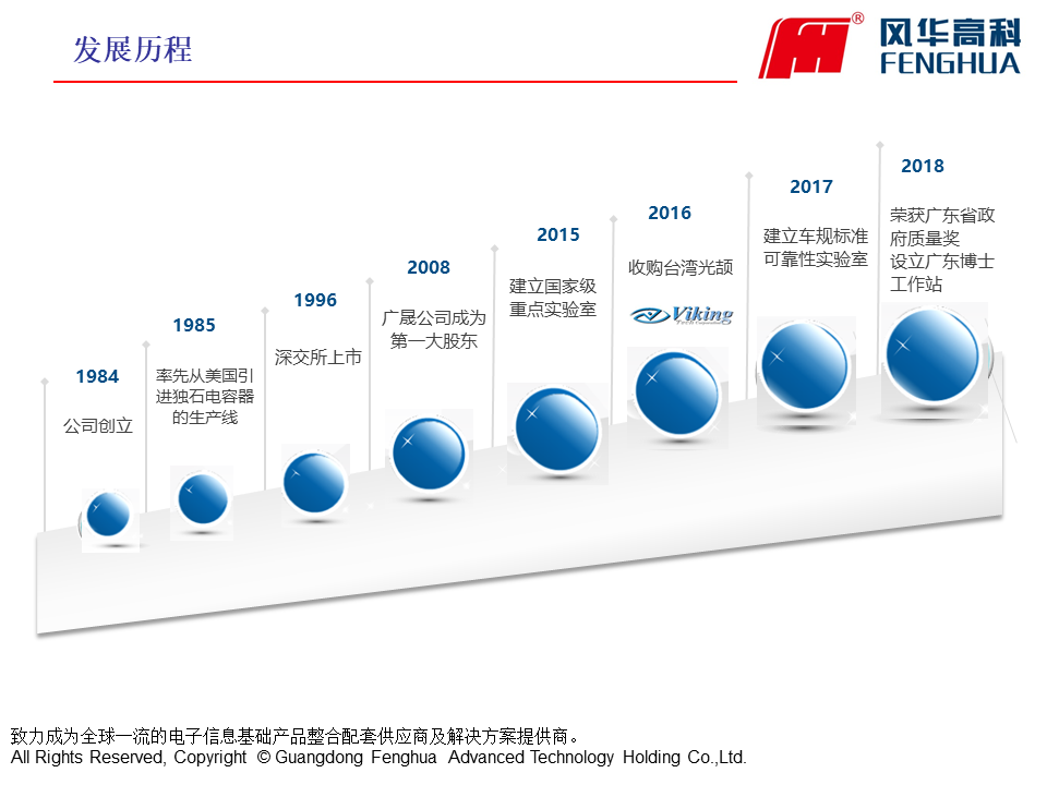 廣東風(fēng)華高新科技股份有限公司(證券簡稱風(fēng)華高科,證券代碼000636)成立于1984年,是一家專業(yè)從事高端新型元器件、電子材料、電子專用設(shè)備等電子信息基礎(chǔ)產(chǎn)品的高新技術(shù)企業(yè),1996年在深圳證券交易所掛牌上市。風(fēng)華高科自進(jìn)入電子元器件行業(yè)以來,實現(xiàn)了跨越式的發(fā)展,現(xiàn)已成為國內(nèi)最大的新型元器件及電子信息基礎(chǔ)產(chǎn)品科研、生產(chǎn)和出口基地,擁有自主知識產(chǎn)權(quán)及核心產(chǎn)品關(guān)鍵技術(shù)的國際知名新型電子元器件行業(yè)大公司。