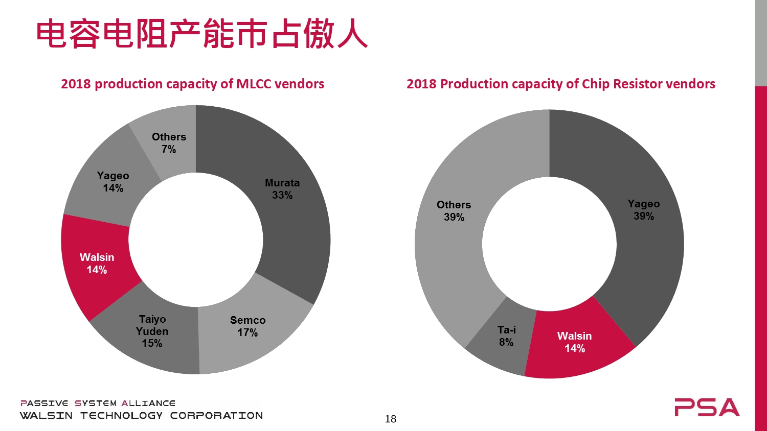 Walsin Technology Corporation成立于1992年,是全球領(lǐng)先的無(wú)源組件制造商,提供一站式產(chǎn)品組合和全球交付平臺(tái)。該公司的產(chǎn)品陣容包括多層陶瓷芯片(MLCC)電容器/陣列,芯片電阻器/陣列和網(wǎng)絡(luò),電感器,RF濾波器,圓盤電容器,壓敏電阻,芯片保險(xiǎn)絲和天線等。