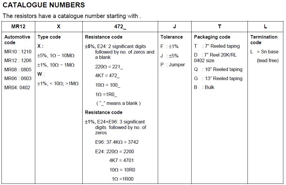 華新科車規(guī)電阻命名規(guī)則對照表