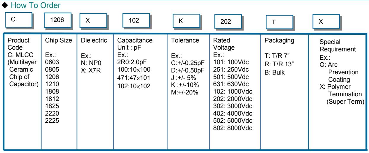VIIYONG(微容)電容品牌編碼規(guī)則對(duì)照表