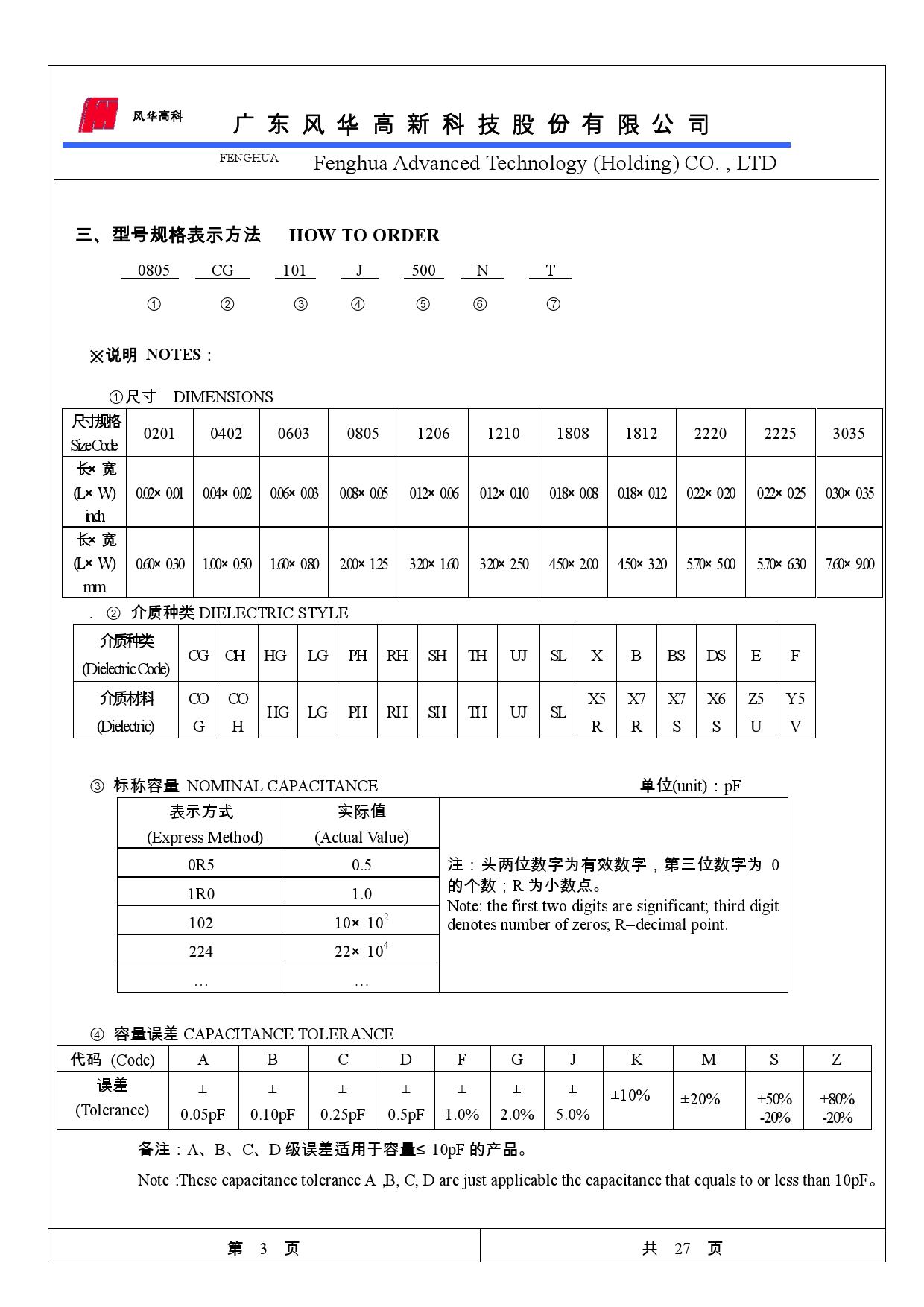風(fēng)華貼片電容型號(hào)對(duì)照表