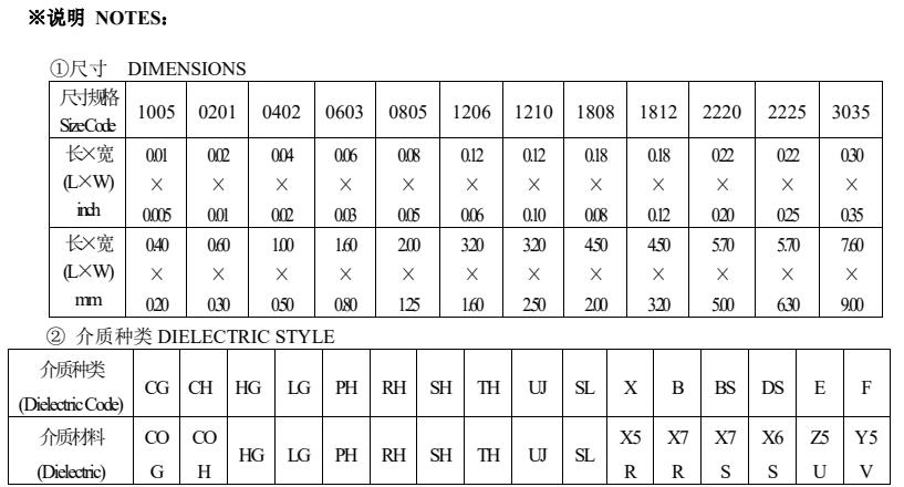 風(fēng)華高科電容材質(zhì)與規(guī)格尺寸對照表